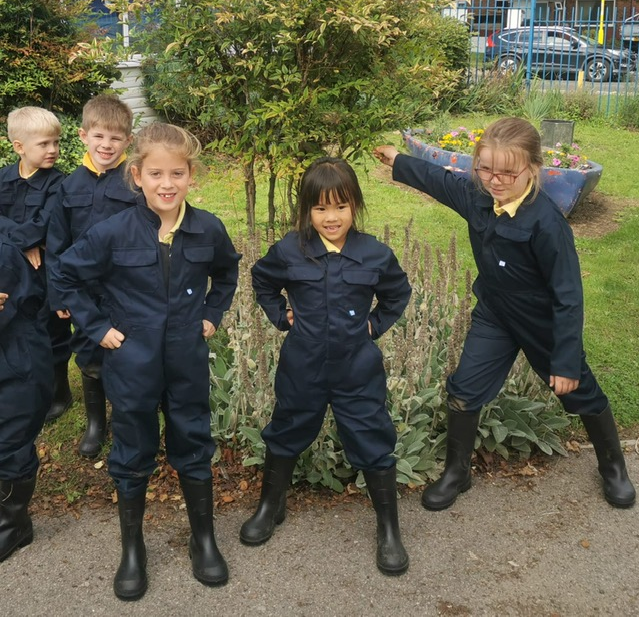 The children were kitted out in overalls and wellies from the 'Go-fund me' initiative of a few years ago, after the 'Great Sensory Garden Fire of 2019.